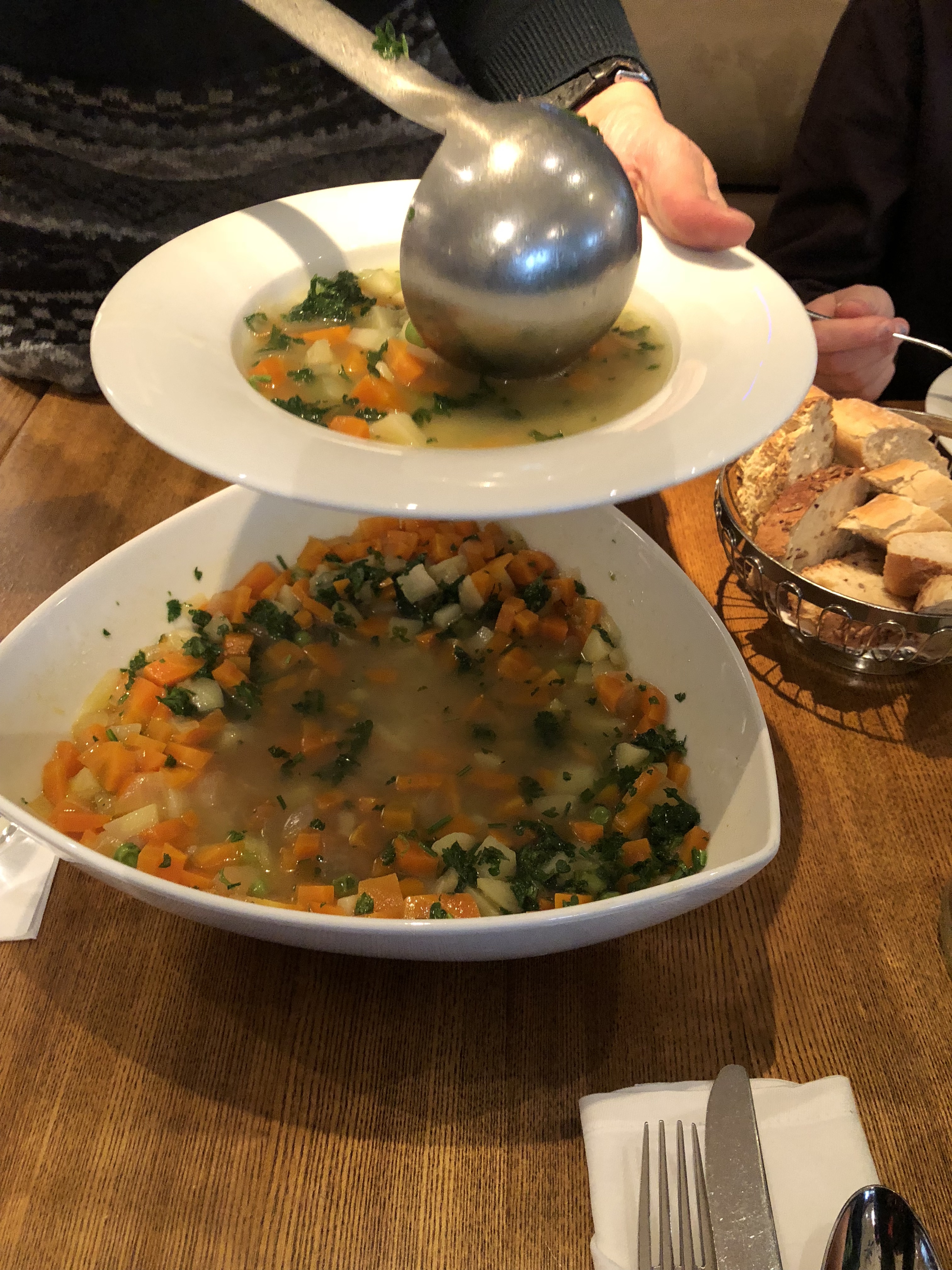 Das Thema im Oktober war Suppen und Eintöpfe. In zwei Küchenzeilen wurde eine Kürbissuppe und ein Möhren-Erbsen-Eintopf gekocht.